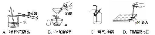 | A.點(diǎn)燃酒精燈 | B.檢驗(yàn)氣密性 | C.稀釋濃硫酸 | D.收集氫氣 |