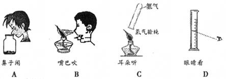 化學(xué)實(shí)驗(yàn)中,人的五官起著非常重要的作用,下列五官的使用符合實(shí)驗(yàn)要求的是( )