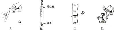 | A.瓶塞正放在桌面上 | B.試管稍微傾斜 |
