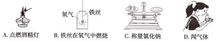 | A.聞氣體的氣味 | B.量液體時(shí)讀數(shù) | C.取用液體試劑 | D.取用固體粉末 |