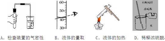 | A.稀釋濃硫酸 | B.讀液體體積 | C.引燃酒精燈 | D.檢查氣密性 |