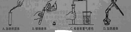 | A.傾倒液體 | B.檢查裝置的氣密性 | C.加熱液體 | D.滴加液體 |