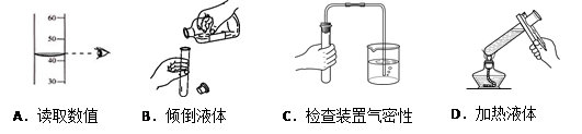 | A.點(diǎn)燃酒精燈 | B.檢查氣密性 | C.讀取液體體積 | D.加熱液體 |