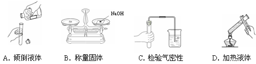 | A.木炭還原氧化銅 | B.向燒杯中傾倒水 | C.檢查裝置氣密性 | D.點(diǎn)燃酒精燈 |
