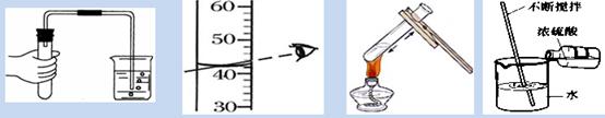 A.檢查裝置的氣密性 B.液體的量取 C.液體的加熱 D稀釋濃硫酸