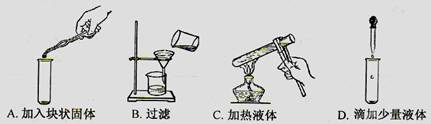 | C.加熱試管中液體時,試管口朝著有人的方向 | D.嘗藥品的味道 |
