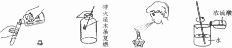 | A.傾倒液體 | B.檢驗氧氣 | C.熄滅酒精燈 | D.稀釋濃硫酸 |