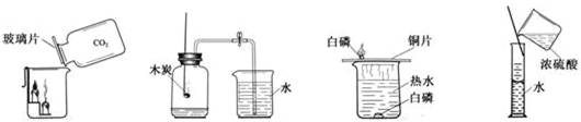 | A.探究CO2性質(zhì) | B.驗(yàn)證空氣中O2含量 | C.探究燃燒的三個(gè)條件 | D.稀釋濃硫酸 |