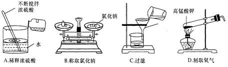 | A.熄滅酒精燈 | B.取液體藥品 | C.稀釋濃硫酸 | D.過濾 |