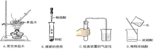 | A.加熱液體 | B.稀釋濃硫酸 | C.蒸發(fā)食鹽水 | D.檢查裝置氣密性 |