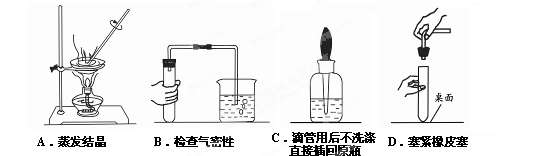 | A.蒸發(fā)結(jié)晶 | B.檢查氣密性 | C.用后滴管直接插回原瓶 | D.塞緊橡皮塞 |