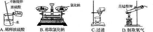 | A.檢查裝置的氣密性 | B.液體的量取 | C.液體的加熱 | D.稀釋濃硫酸 |