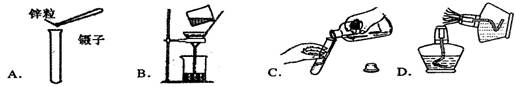 | A.量取液體 | B.聞氣味 | C.傾倒液體 | D.加入金屬鋅粒 |