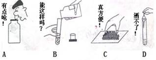 學(xué)習(xí)化學(xué)的一個(gè)重要途徑是科學(xué)探究,實(shí)驗(yàn)是科學(xué)探究的重要手段,下列化學(xué)實(shí)驗(yàn)操作不正確的是![]()