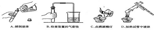 | A.蒸發(fā)食鹽 | B.取固體粉末 | C.加熱液體 | D.傾倒液體 |