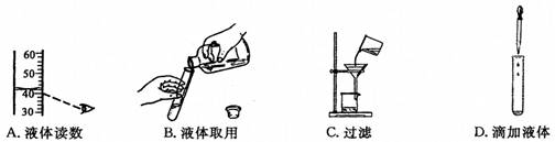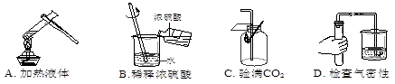 | A.取用少量液體 | B.過濾 | C.聞氣味 | D.稀釋濃硫酸 |