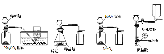 ①用H2O2和MnO2制取O2 ②用CaCO3和稀鹽酸制取CO2 ③用KClO3制取O2 ④用Zn和稀H2SO4制取H2 ⑤用Na2CO3和H2SO4制取CO2