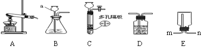 (2)若用高錳酸鉀制取氧氣,應(yīng)選用的發(fā)生裝置是 (填裝置編號(hào)),在加入藥品前,應(yīng)首先 ,反應(yīng)的化學(xué)方程式是 。若要獲得干燥的氧氣,除發(fā)生裝置外,還應(yīng)選用D裝置,并在該裝置中盛放 (填寫(xiě)試劑名稱(chēng))。如果用E裝置收集該氣體,則氣體從 端進(jìn)入(填“m”或“n”)。