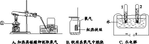 (1)寫出A中帶有標號①的儀器名稱 。氧氣的收集方法可采用排水法