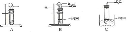 (3)某同學(xué)從裝置A得到啟發(fā),在裝置A的基礎(chǔ)上增加了隔離銅網(wǎng)改成裝置B來制取氫氣,又用一支底部有一個小洞的試管和礦泉水瓶組合成裝置C(夾持儀器都略去)。則B與A相比優(yōu)點是 。而裝置B顯示的化學(xué)反應(yīng)狀態(tài)為 (填“進行中”或“已停止”)。