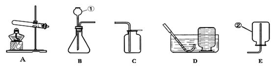 ⑴寫出圖中標(biāo)號為①~②的儀器名稱:① ;② 。