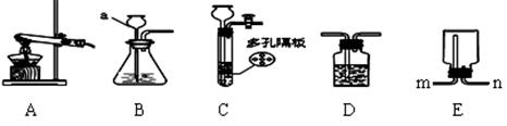 (2)若用高錳酸鉀制取氧氣,應(yīng)選用的發(fā)生裝置是 (填裝置編號),在加入藥品前,應(yīng)首先 ,反應(yīng)的化學(xué)方程式是 。若要獲得干燥的氧氣,除發(fā)生裝置外,還應(yīng)選用D裝置,并在該裝置中盛放 (填寫試劑名稱)。如果用E裝置收集該氣體,則氣體從 端進(jìn)入(填“m”或“n”)。