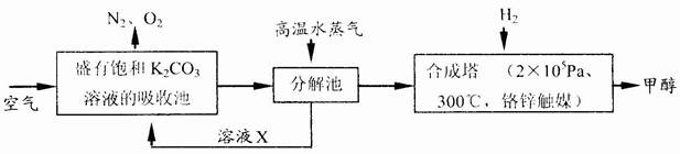 為了發(fā)展低碳經(jīng)濟(jì),最近有科學(xué)家提出“綠色自由”構(gòu)想:把空氣吹入飽和碳酸鉀溶液中生成KHCO3,然后利用KHCO3受熱易分解產(chǎn)生CO2的性質(zhì),把CO2從溶液中提取出來,再經(jīng)化學(xué)反應(yīng)使之變?yōu)榭稍偕剂霞状。“綠色自由”構(gòu)想的技術(shù)流程如下:![]()