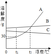 2℃A,B,C三種物質的飽和溶液降溫至t