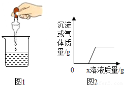 向燒杯中逐滴加入x溶液至過量(圖1),生成沉淀或氣體的質量與加入x溶液的質量關系符合圖2的是( )