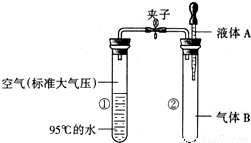 如圖所示,夾子開始處于關(guān)閉狀態(tài),將液體A滴入試管②與氣體B充分反應(yīng),打開夾子,可發(fā)現(xiàn)試管①內(nèi)的水立刻沸騰了.則液體A和氣體B的組合可能是下列的( )