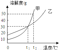 1℃時(shí),甲和乙各30g分別加入80g水中,均能恰好完全溶解