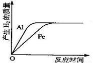 將質(zhì)量相等的鋁粉和鐵粉分別與同體積、同濃度的稀硫酸反應,反應情況如下圖所示.有關敘述中正確的是( )
