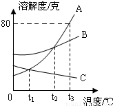 如圖是A、B、C三種固體物質的溶解度隨溫度變化的曲線圖.根據圖回答:
