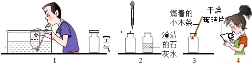 | (1)用排水集氣法收集兩瓶呼出的氣體,另收集兩瓶空氣 | |
