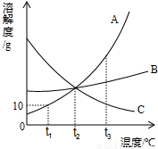 (2008?黑龍江)小明繪制的三種固體物質(zhì)的溶解度曲線如圖所示: