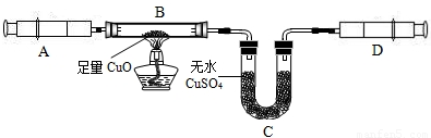 (2008?吳江市模擬)某;瘜W(xué)興趣小組承擔(dān)了某項(xiàng)研究課題的一部分:通過(guò)實(shí)驗(yàn)探究氣體X(已知由兩種元素組成)的元素組成.實(shí)驗(yàn)裝置如下.將0.17gX氣體由注射器A緩緩送入B裝置(B裝置中的空氣已預(yù)先除去),使之完全反應(yīng),生成的氣體全部用D裝置抽取收集.實(shí)驗(yàn)的現(xiàn)象和數(shù)據(jù)記錄如下: