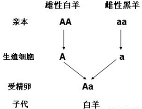 一只白公羊與一只黑母羊交配,生下的小羊全部表現(xiàn)為白色,此現(xiàn)象可解釋為