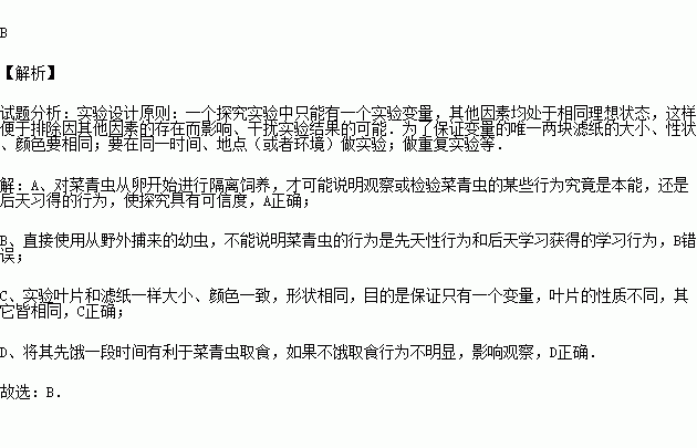 在探究菜青蟲取食行為的實驗中,下列有關(guān)操作過程不正確的是( )