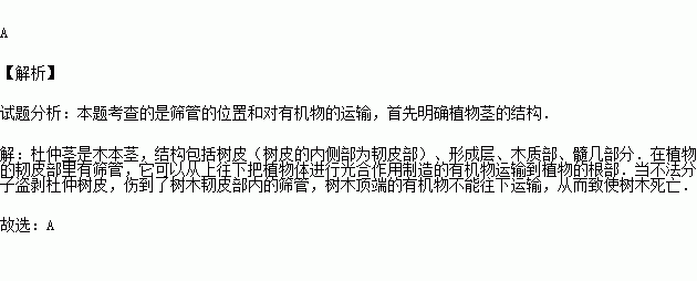 有不法分子盜剝杜仲樹皮,致使樹木死亡,這是因?yàn)闃淦び休斔陀袡C(jī)養(yǎng)料的( )