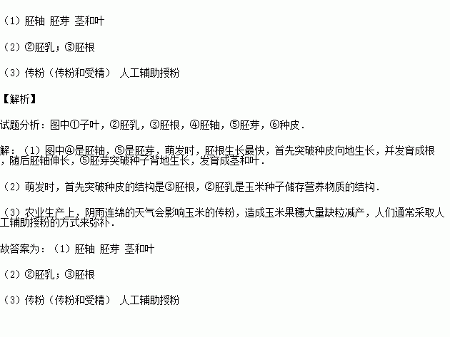 (3)農(nóng)業(yè)生產(chǎn)上,陰雨連綿的天氣會影響玉米的 ,造成玉米果穗大量缺粒減產(chǎn),人們通常采取 的方式來彌補(bǔ).