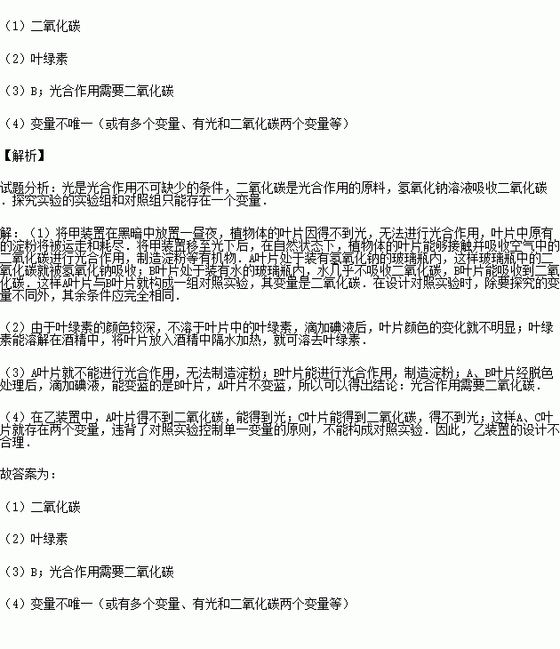 (1)在氫氧化鈉的作用下,A葉片與B葉片形成一組對照,其變量是 .