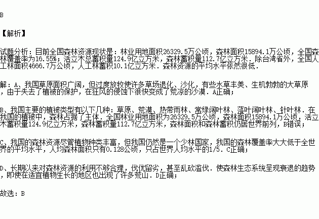 關(guān)于我國植被特點(diǎn)的描述不正確的是( )