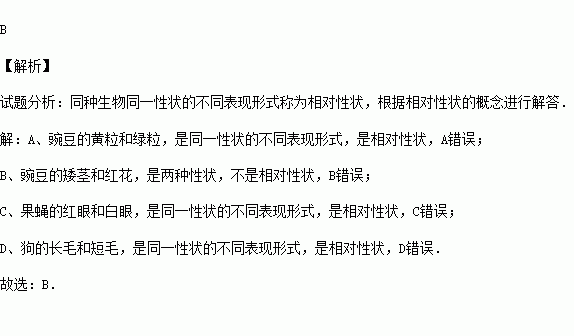 C.果蠅的紅眼和白眼 D.狗的長(zhǎng)毛和短毛