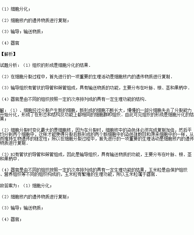 (3)根據(jù)各種細(xì)胞的形態(tài)可以推測(cè),B2屬于 組織,此組織的作用是 .