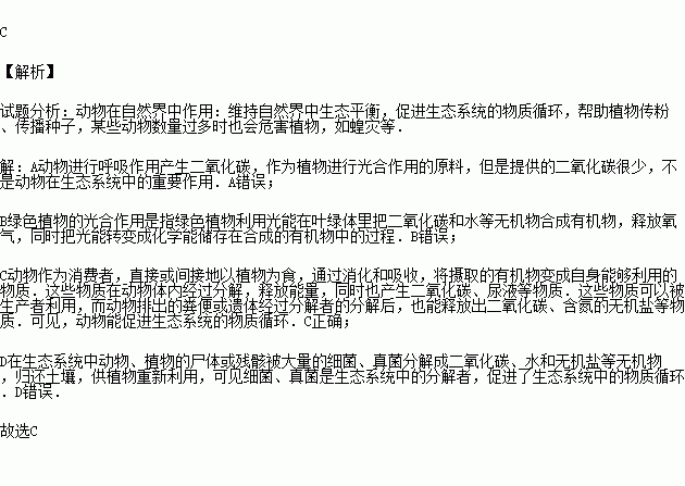 下列屬于動物在生態(tài)系統(tǒng)中的重要作用之一的是( )
