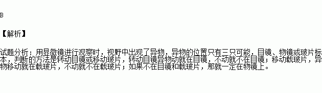 用低倍顯微鏡觀察某裝片時(shí),如果發(fā)現(xiàn)視野中有一異物,移動(dòng)裝片,異物并不動(dòng),轉(zhuǎn)動(dòng)目鏡后,異物也不動(dòng)。這異物可能在( )