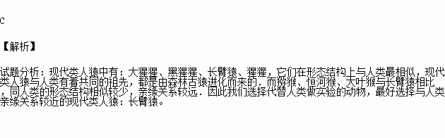 有一種新藥即將應(yīng)用于臨床,為了確保藥品的安全性,需要在下面的動(dòng)物中進(jìn)行藥物實(shí)驗(yàn),你認(rèn)為應(yīng)該選擇哪種動(dòng)物最合適: