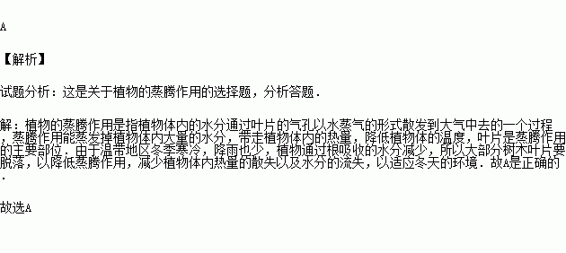 溫帶地區(qū)冬季寒冷,大部分樹(shù)木葉片要脫落,落葉的原因是( )