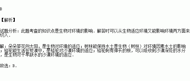 A.朵朵葵花向太陽 B.樹林能保持水土