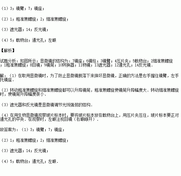 (3)用來調(diào)節(jié)視野中光線強弱的結構是[13] 和[ ] .